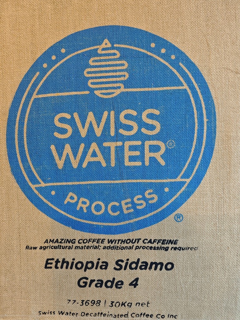 Soft coffee without caffeine, not chemically treated. This 100% Arabica has been decaffeinated by the Swiss Water Process, without the use of chemicals.