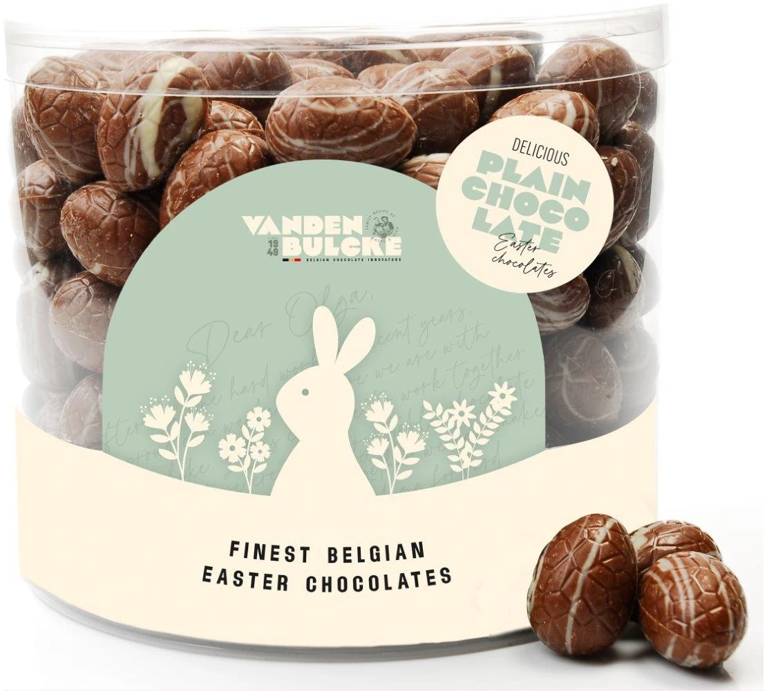 Melk chocolade eitjes met vanille vulling.