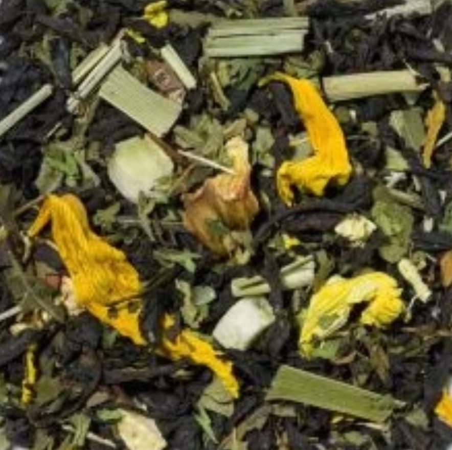 Mojito, zwarte thee met de smaak van coole spearmint, fruitige limoen en frisse citroenolie. Braambessenblaadjes, kaneel, nana-munt, lime- en pomelostukjes, citroengras, zoethout en spearmint-olie.